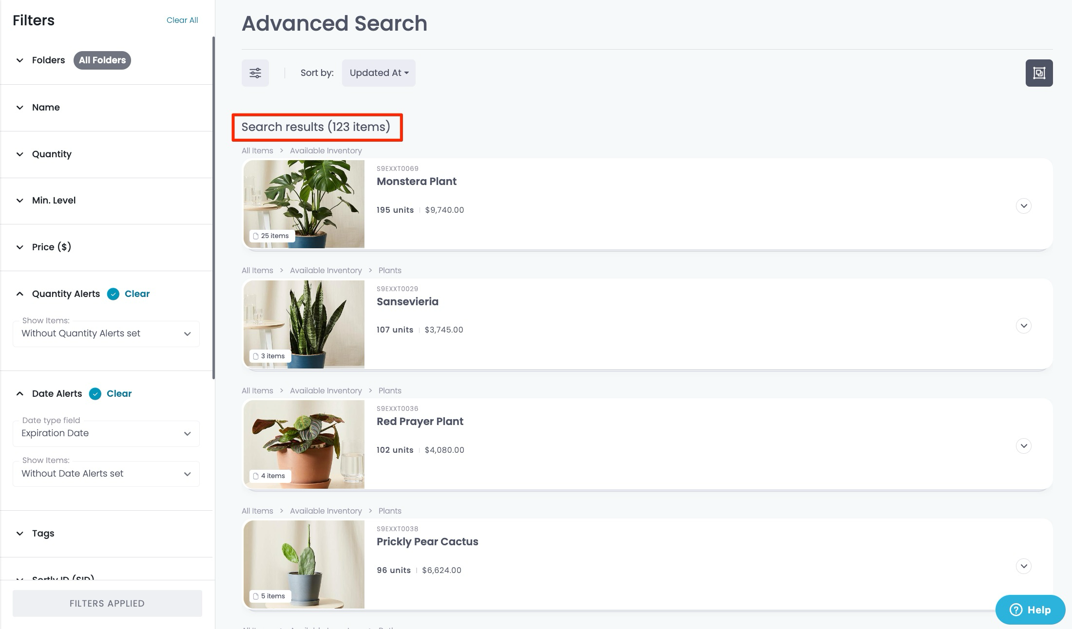 - Navigate to Advanced Search and choose either Date or Quantity Alerts from the filters
