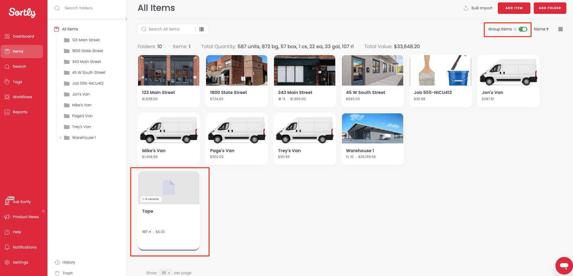 The top-level item will have a unique Sortly ID, but each variant created under the single item will have its own Sortly ID (SID). This makes it possible to generate unique QR labels or barcodes for each item variant.