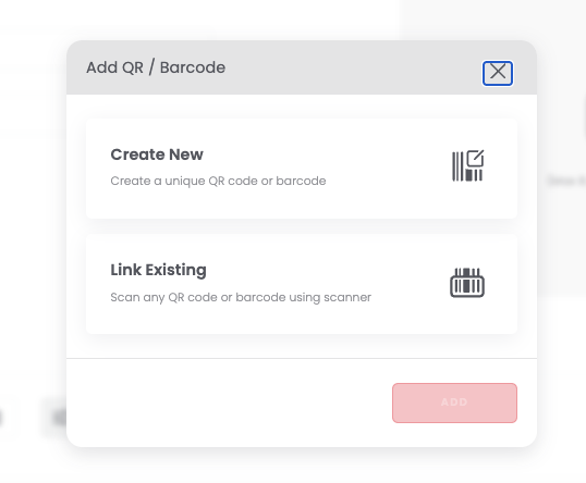 Link Existing – link an already existing QR code or barcode by scanning it.