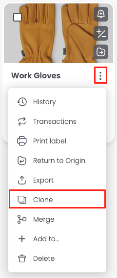 Cloning is the easiest way to duplicate an existing item into another folder or location. It’s especially useful when you have identical products stored in different places or want to keep the same specifications (like name, tags, or custom fields) for similar inventory.