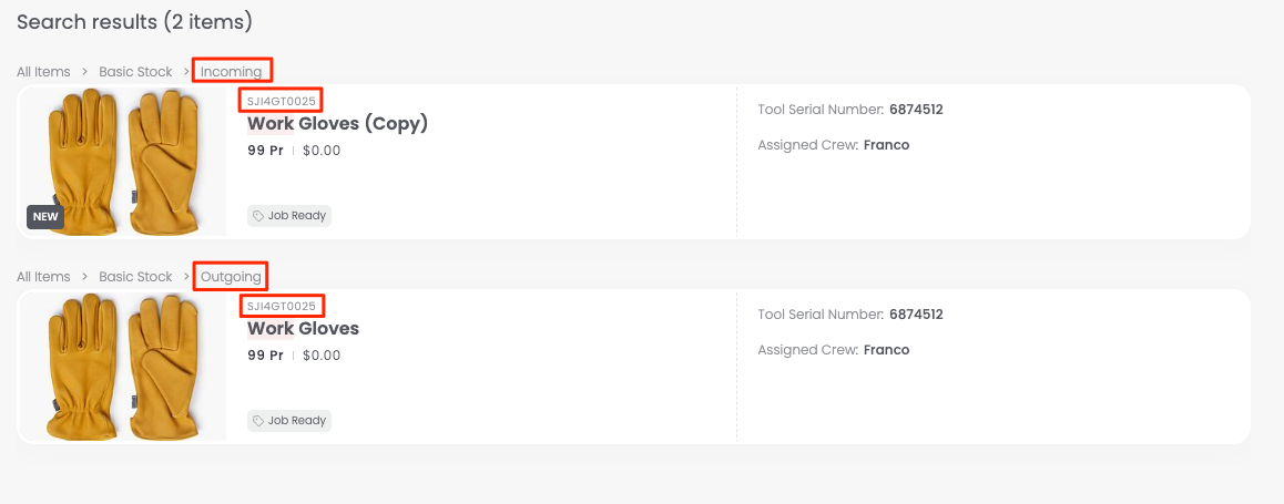 This flexibility makes it easy to track stock stored in multiple places, record transfers between sites, or organize identical items for different teams — all while maintaining accurate quantity records in each location.