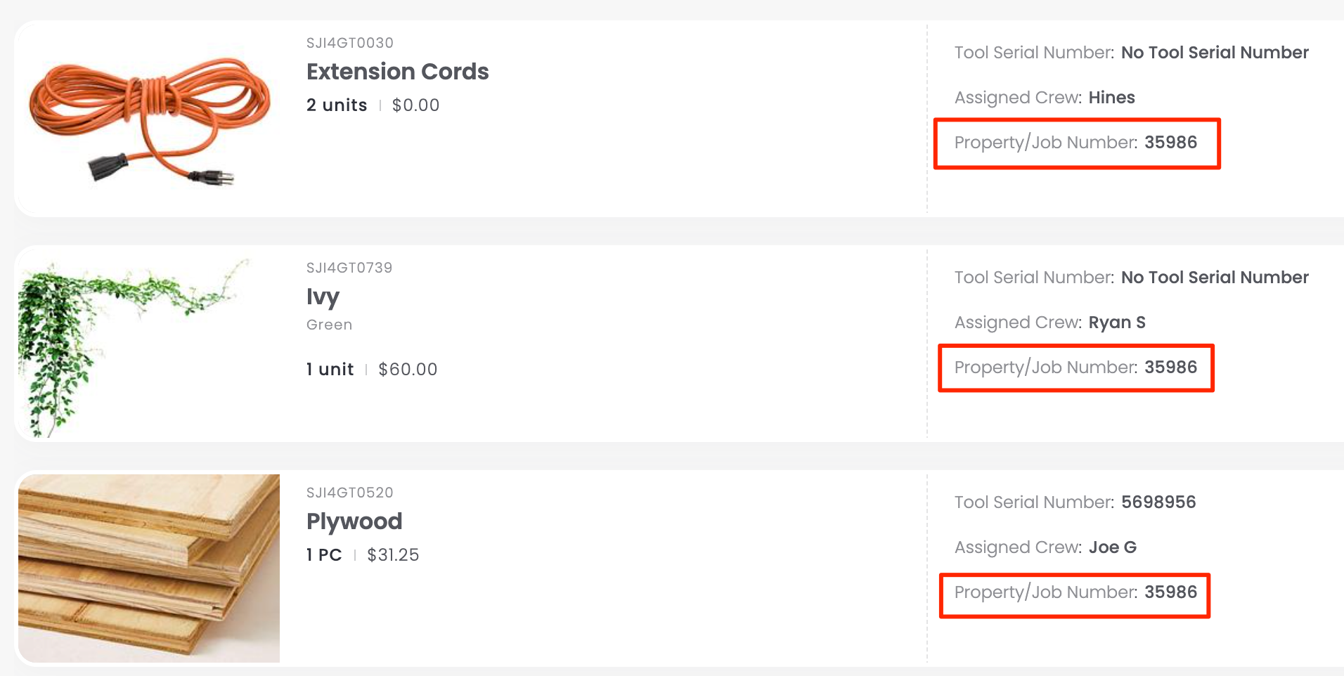 If you don’t want to rely on folders alone, you can create a text or dropdown field for Property or Job Number. This can be helpful if you later filter or report on items that have moved through multiple jobs or need to be tracked across locations: