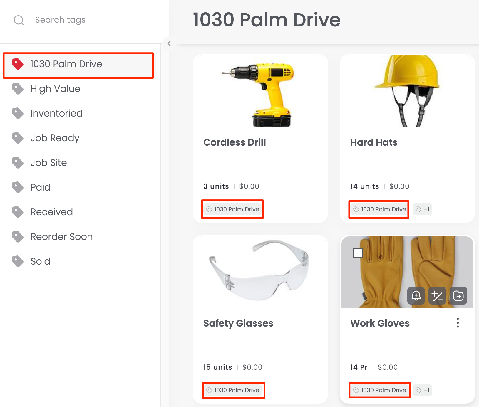 Add a tag like Property-A, Property-B, or P-123 to any items going out. You can then filter by that tag to instantly see what’s been assigned to that property, no matter where the item lives in your folder structure.