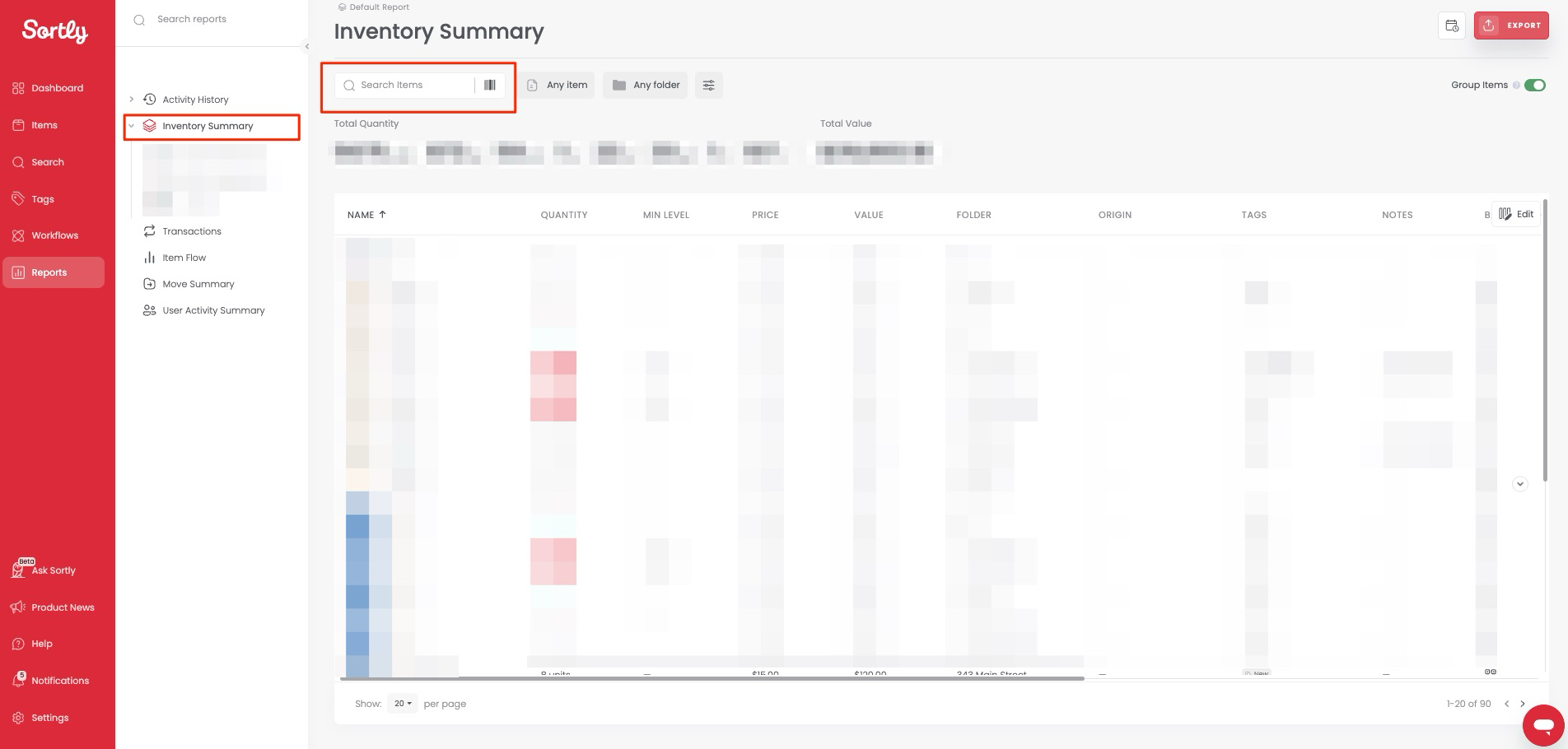 (Optional) Export the report if you want to view it outside of Sortly: