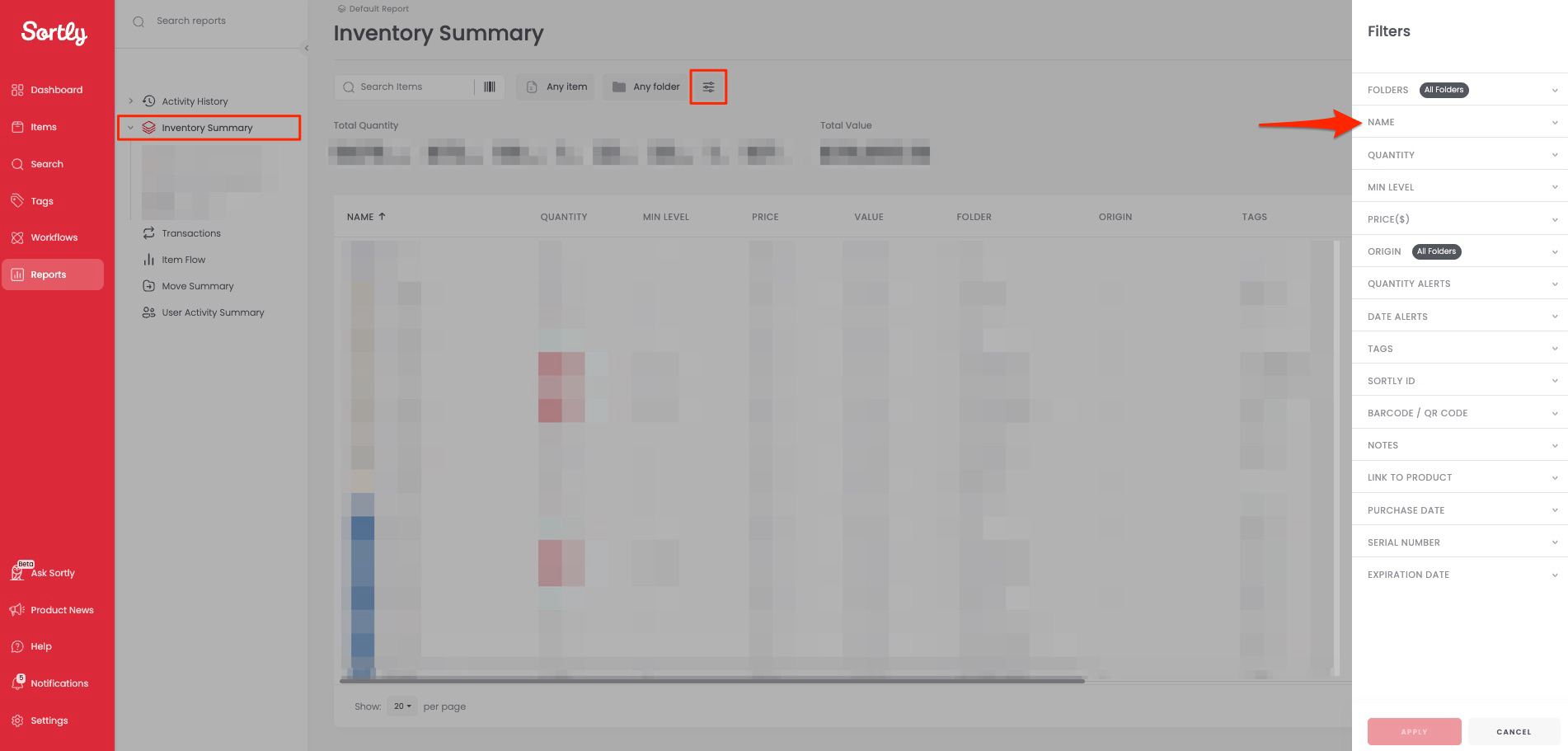 Go to the Reports tab in your Sortly account.
