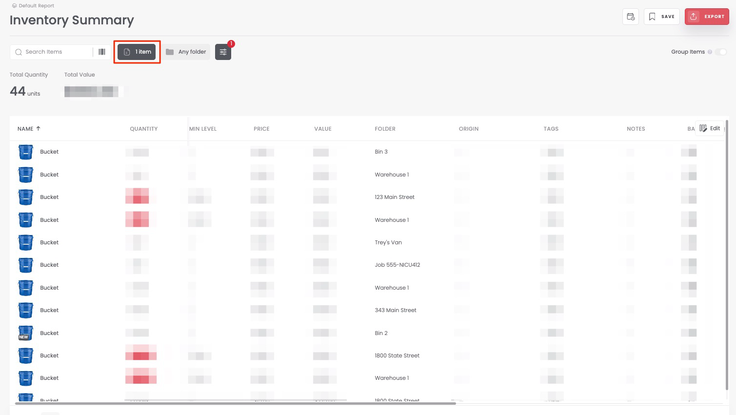 If you want a complete view of where an item is located (and how many exist in each folder), the Inventory Summary report is the best place to start.
