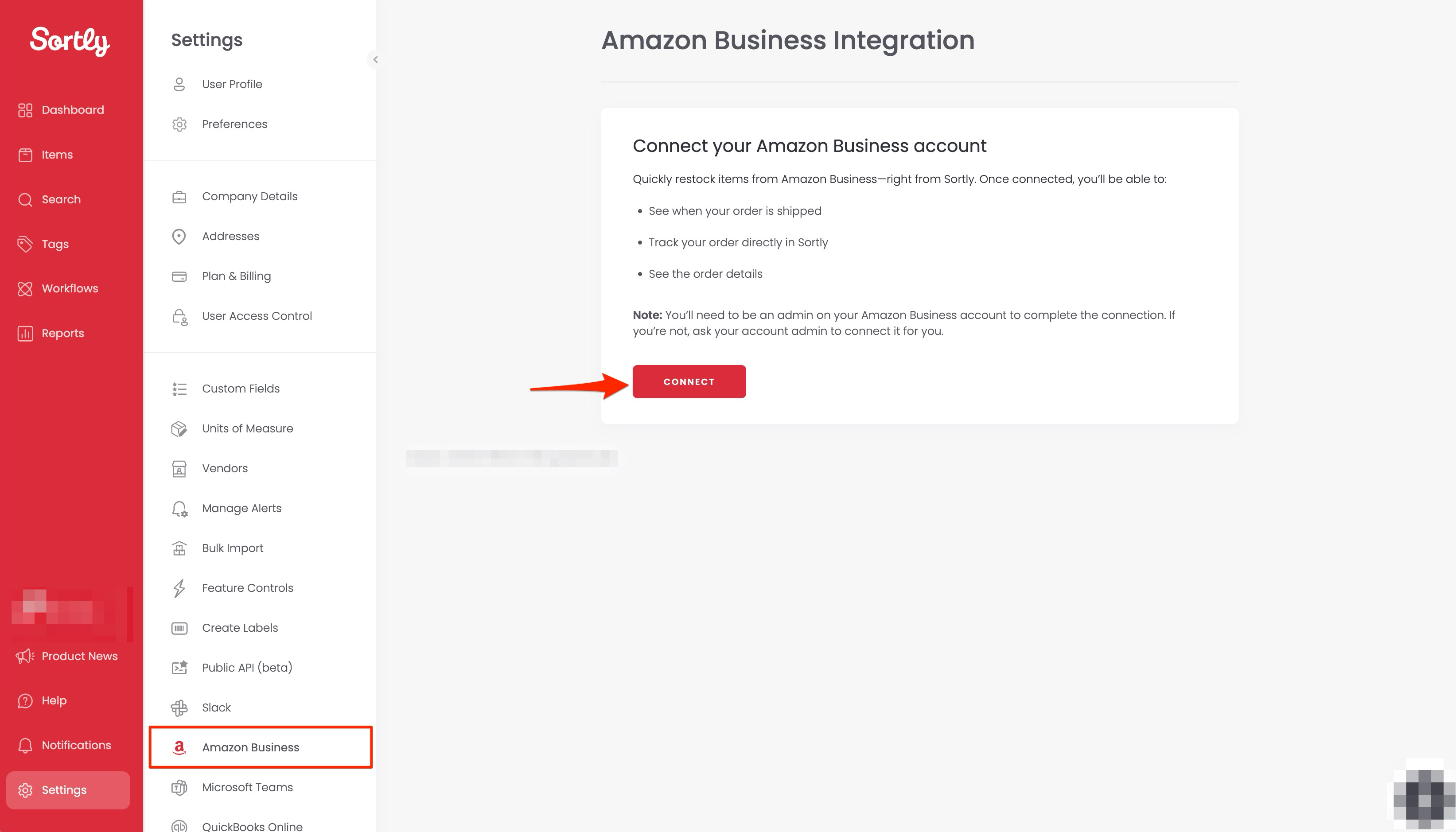 connect your Sortly account to your company’s Amazon Business account