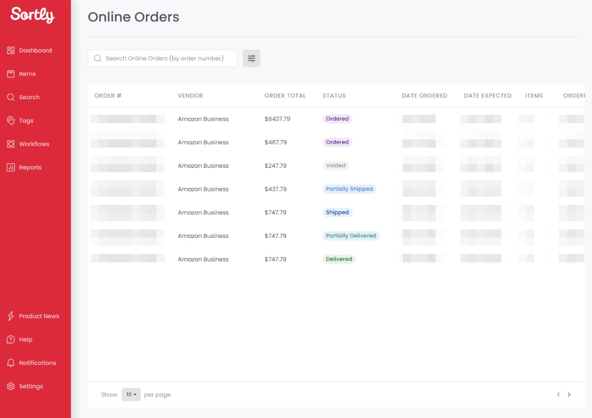 Orders placed outside Sortly will still appear here, as long as they’re part of the connected Amazon Business account.